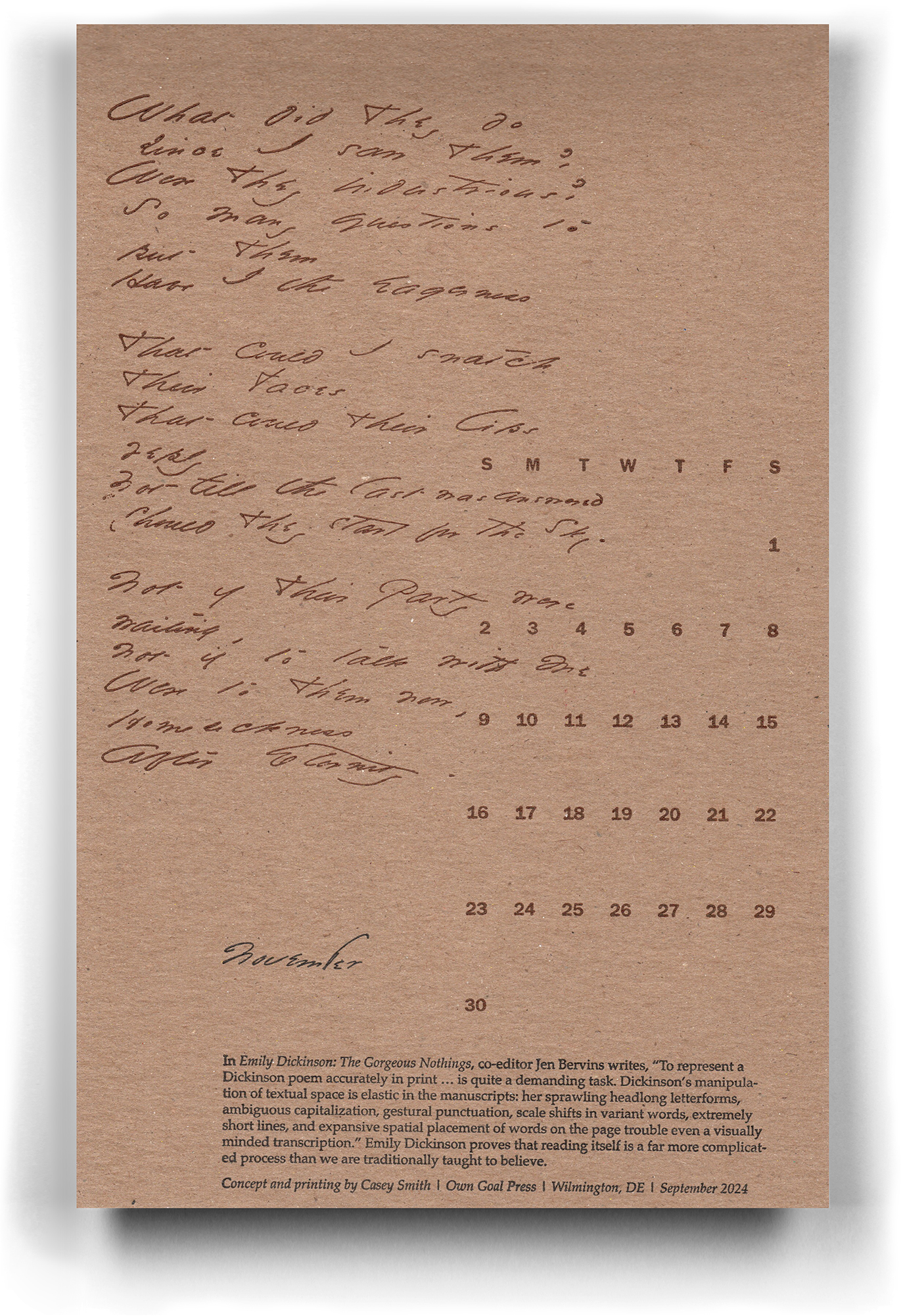 RAY NICHOLS IS SAYING THIS: As the current APHA calendar organizer, I encourage anyone doing a 2026 APHA calendar page to PUSH THEIR LETTERPRESS ENVELOPE more than they might typically do. Avoid the mundane. Experiment. Stretch. It seems clear to me that the Chesapeake Chapter is at least one of the top chapters in APHA. I’d like to see us add some distance between us and #2. This year, you need to do 150 copies. Everyone still gets the paper stipend.