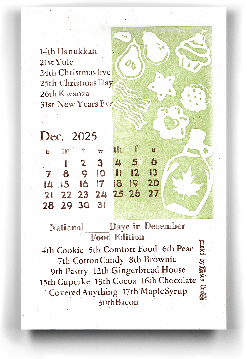 Steve Varvaro presented a phenomenal website documenting 60 years of calendar pages by members of the West Chester Chappel that was searchable by month, year, press, and printer. There was also a brief discussion of aesthetic disagreements between members regarding the sometimes contradictionary goals of traditional design versus creative design of the calendar part of the pages. Steve also mentioned Partners in Print in Seattle, which has a fleet of provisional presses and holds a monthly Zoom meeting called “Shop Talk,” which sounds similar to what we are doing with wiUPt. Ray showed a piece of recent work that used AI to locate all English 7-letter words with the middle letters of “UNM” for a collective project promoting the 250th anniversary of the signing of the Declaration. James Quigley polled everyone present for input for research related to the history of letterpress accouterments, such as registration pins, metal galleys, quoins, and probably a gazillion other possibilities. Ian noted a strong appetite for YouTube educational content. Casey pointed out that all special collections see value of creating teaching units for letterpress. Carol Maurer spoke about her work at the 500-square-foot free library in Cochranville, PA, and about her contibution, which she embroidered, to the cooperative UCBA Trees book. Ray & Jill also showed their pages for the same book. The book’s cover also uses Ray‘s “ShahnTorn” typography he designed and has made into wood type. There was some discussion about the various contributions of the people present to promoting political issues.