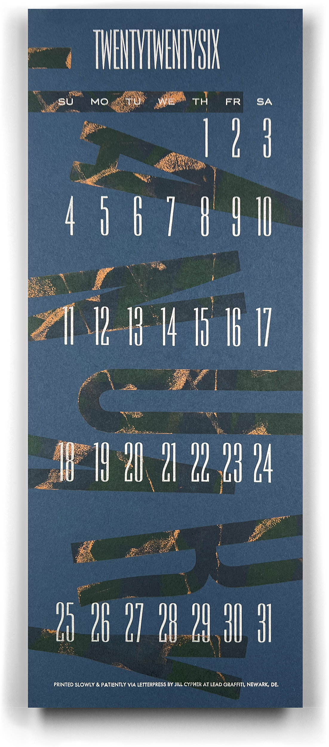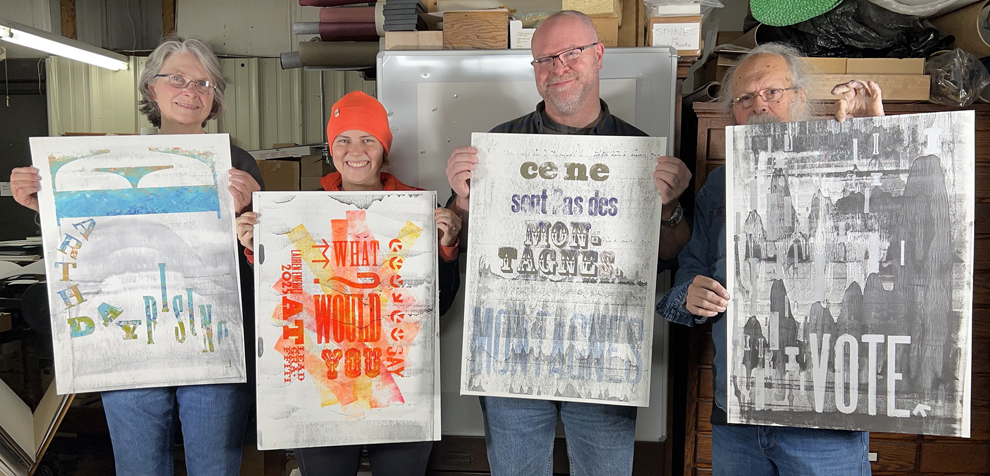 The letterpress studio of Lead Graffiti was voted Newark’s favorite artist of 2024 in a recent citizen poll by the Newark Post. That inspired the Newark Arts Alliance to dedicate its January exhibition to an overview of Lead Graffiti’s work over the past two decades and its dedication to “printing slowly & patiently via letterpress in Newark, Delaware.”